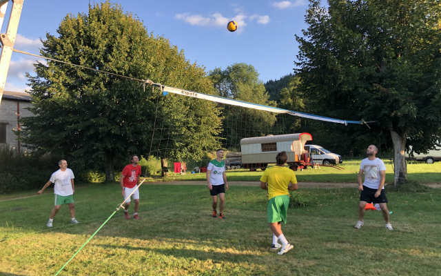 Une nouvelle activité, qui devrait être renouvelée le plus régulièrement possible vient d’être mise en place. Pour ce premier rendez-vous, les organisateurs avait prévu une initiation au volley-ball. Rendez-vous était donc donné sur la zone de loisirs de Juré, sur le terrain de camping, vendredi 29 juillet à 20:00. Une quinzaine de personnes se sont donc retrouvées dans la bonne humeur. Après un rappel des règles principales de ce jeu et un entrainement, des équipes furent formées et un tournoi amical a débuté qui s’est terminé à la tombée de la nuit. Un grand merci aux bénévoles qui ont mis en place cette nouvelle activité sportive.