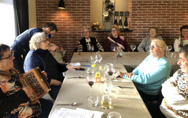 Jeudi 2 décembre 2021 a eu lieu le repas de fin d’année du Club de l’Amitié des Bords de l’Aix (Juré & Saint-Marcel). Une vingtaine de personnes se sont rendues à l’Hôtel de la Poste à Saint-Just où la table avait été réservée. Une surprise attendait les convives : Marie-Hélène Arnaud était présente et elle a joué, sur son accordéon diatonique, des morceaux de musique entre chaque plat. Les autres clients du restaurant ont également pu profiter de ces morceaux de chansons qui souvent étaient reprises en choeur par les membres du Club de l’Amitié. L’Hôtel de la Poste a, comme à l’accoutumé, servi de délicieux plats avec leurs chariots de fromages et de desserts si réputés. Ce fut une bien belle journée.