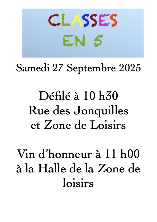 Classes en 5 le 27 septembre