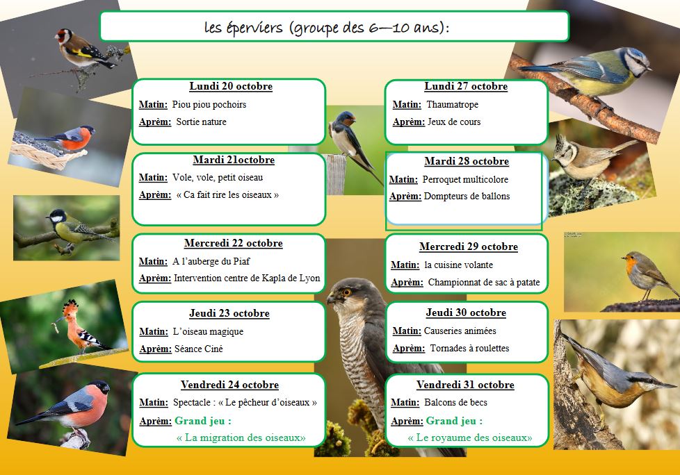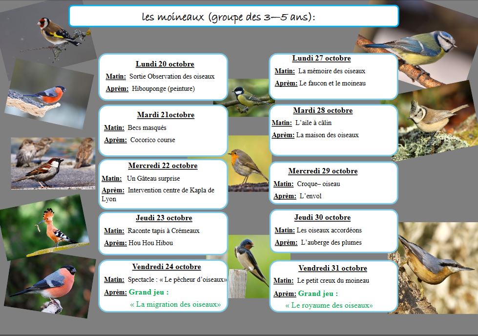 Programme du centre de loisirs pour les vacances de la Toussaint