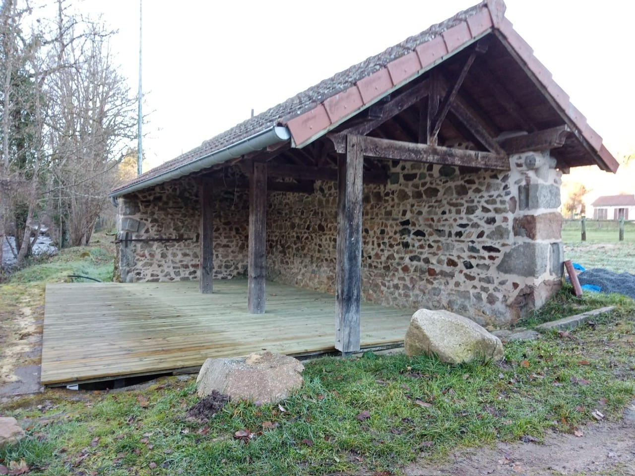 Lavoir avec la terrasse en bois :