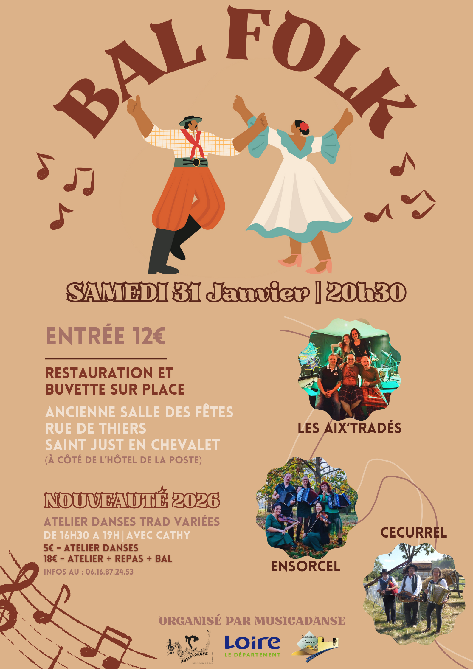 L’association MUSICADANSE vous invite à une soirée festive et conviviale autour des danses traditionnelles françaises ! Des groupes invités seront présents : Les Aix’Tradés, Ensorcel, Cecurrel