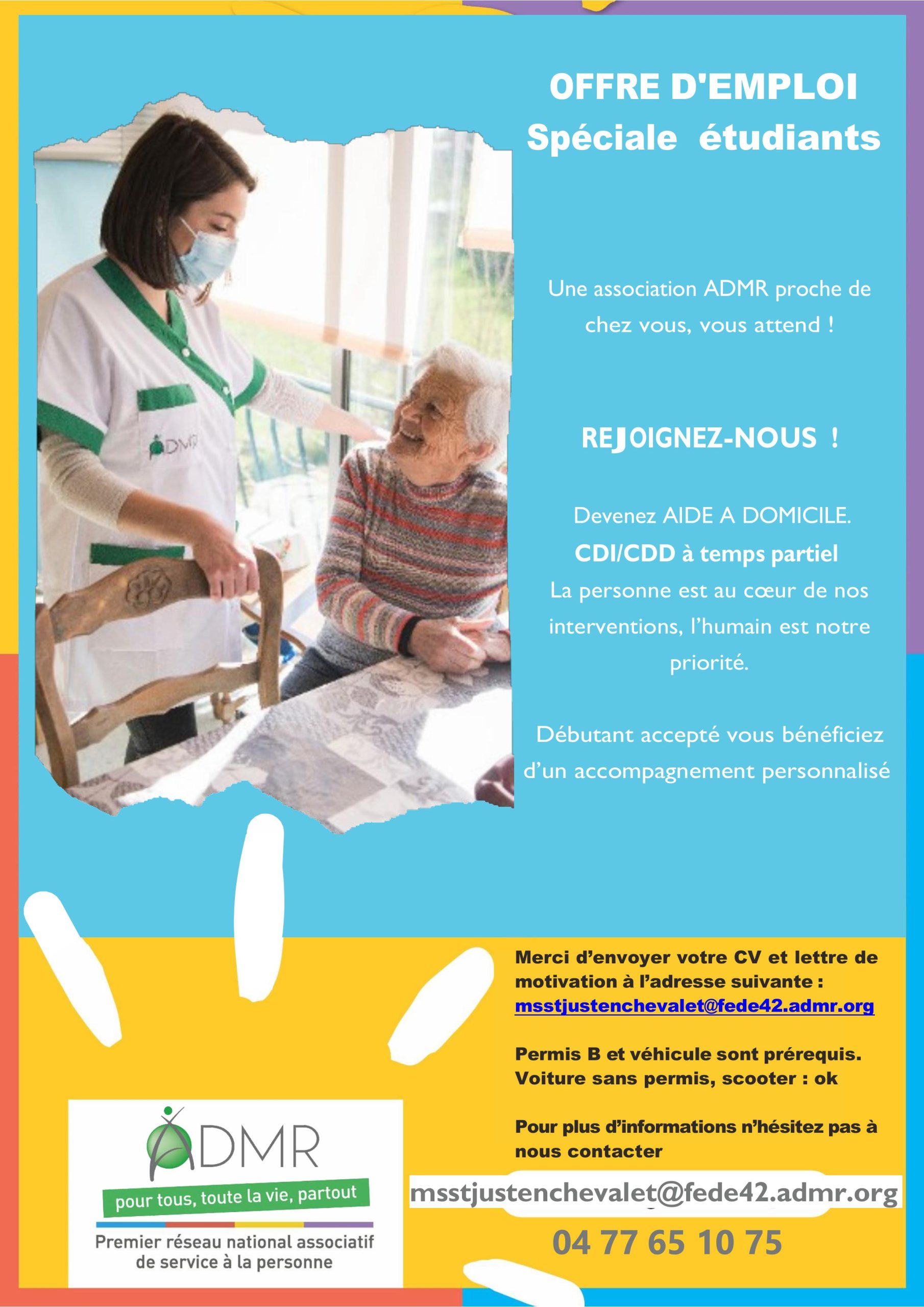 L’ADMR recherche une aide a domicile, spéciale étudiants
