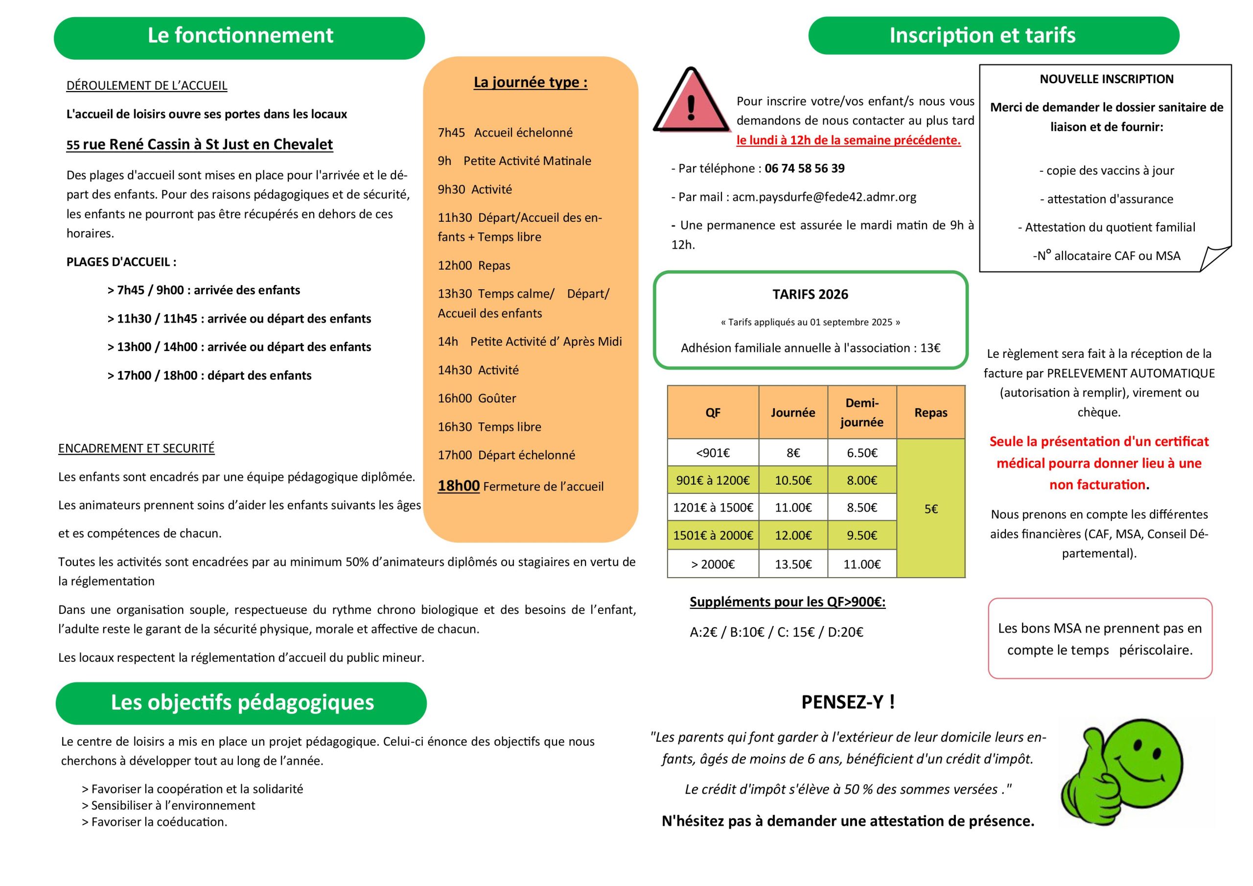 Voici le programme du centre de loisirs de Saint Just en Chevalet de tous les mercredis du mois d’avril à juillet 2026.