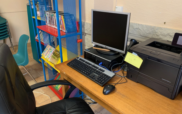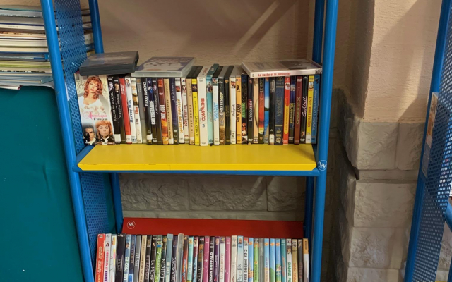 Egalement, une étagère de DVD est disponible ainsi qu’un poste PC pour accéder à des services informatiques (Impots.gouv ; Accès aux mails, Banque en ligne, etc).